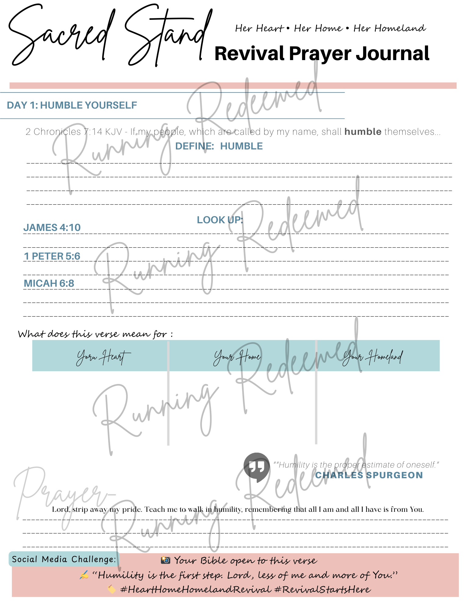 Sacred Stand is a 7 day guided journal designed to help women personally stir revival through Scripture, prayer, and reflection.